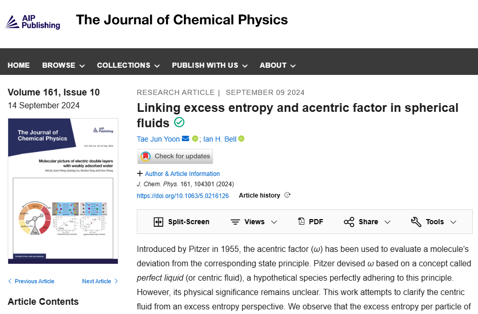 [지속가능기술전공 윤태준 교수] Journal of Chemical Physics 논문 게재